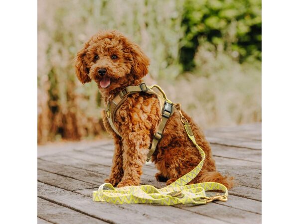Premium Hundegeschirr Gepolstert - Olivgrün/Neongelb