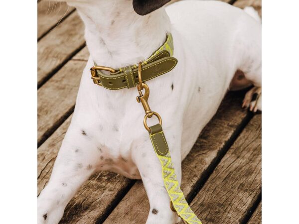 Premium Hundehalsband Gepolstert - Olivgrün/Neongelb