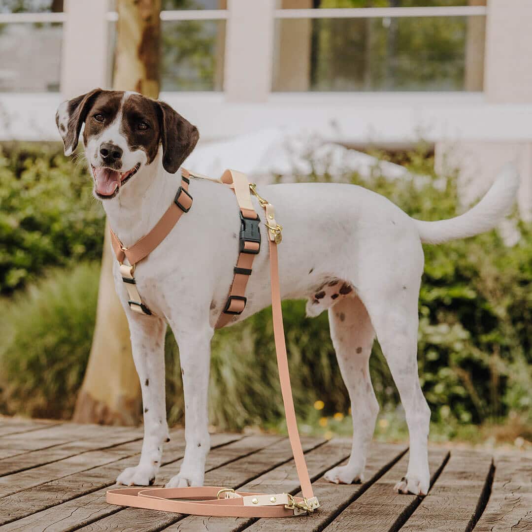 - Pay attention to material compatibility: carabiners made of zinc alloys can lead to wear or discoloration on contact with brass rings on the harness. These are visible but harmless to the dog.