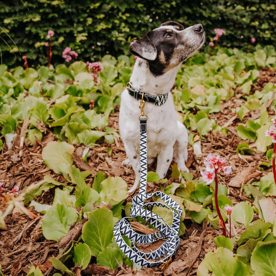 The leash is available in many different colors and comes in a matching set with dog collar and harness.