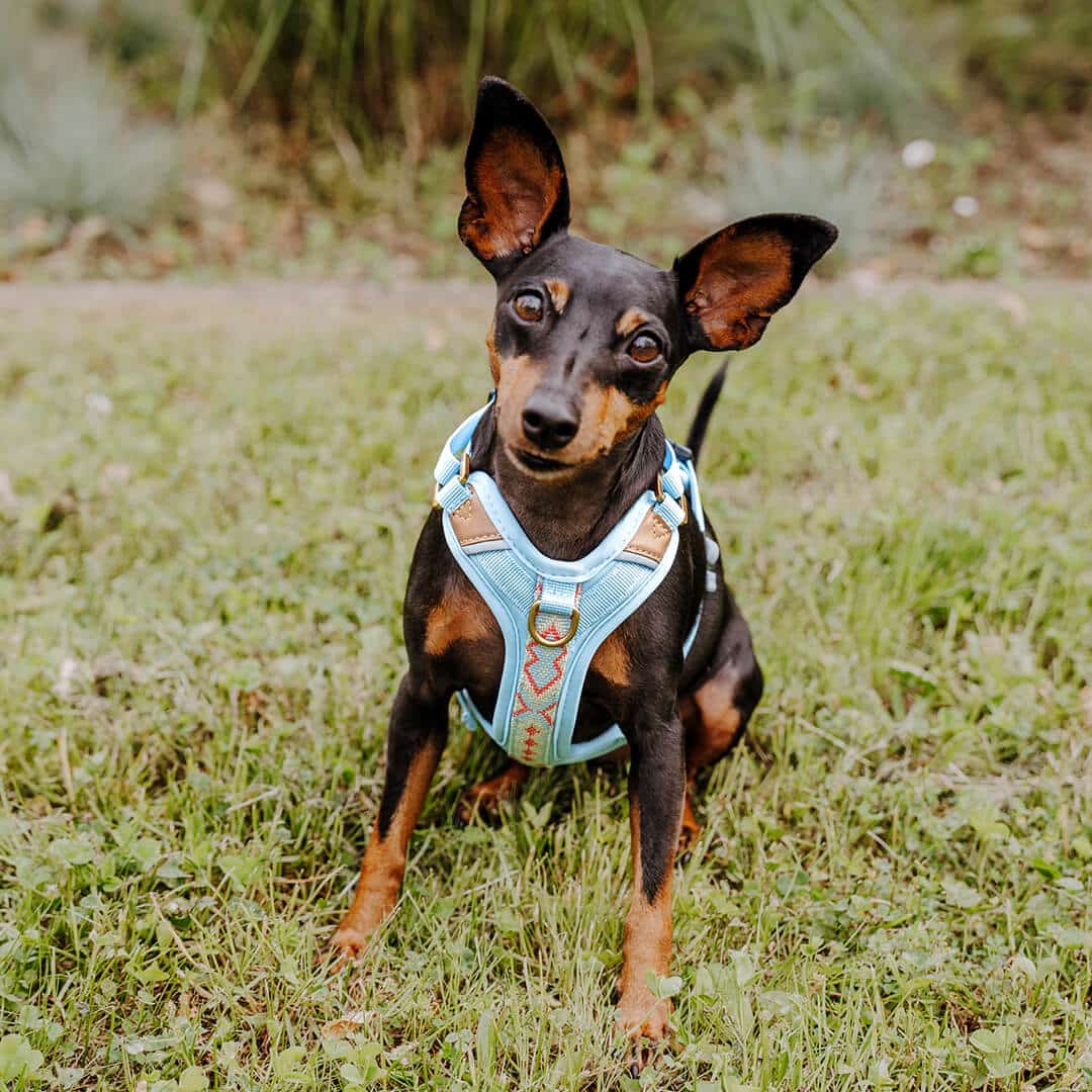 Soft neoprene combined with breathable mesh material ensures comfortable padding and an airy feel – even on longer walks. The harness is equipped with a practical handle on the back for more control in everyday life.