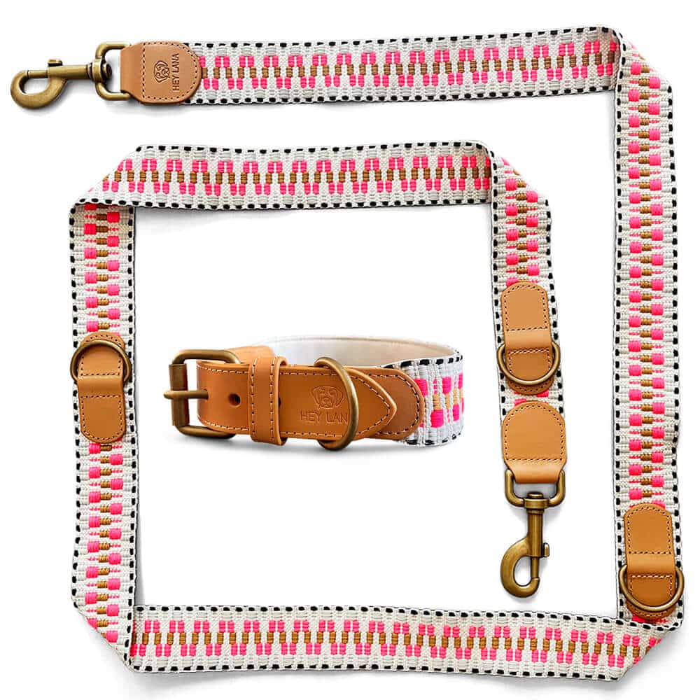 Très chic collection – Dog collar, lead and harness set – Pink/beige